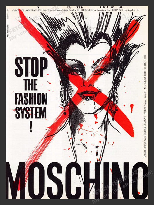 "Stop the Fashion System" Moschino 1990s Print Advertisement Ad 1990