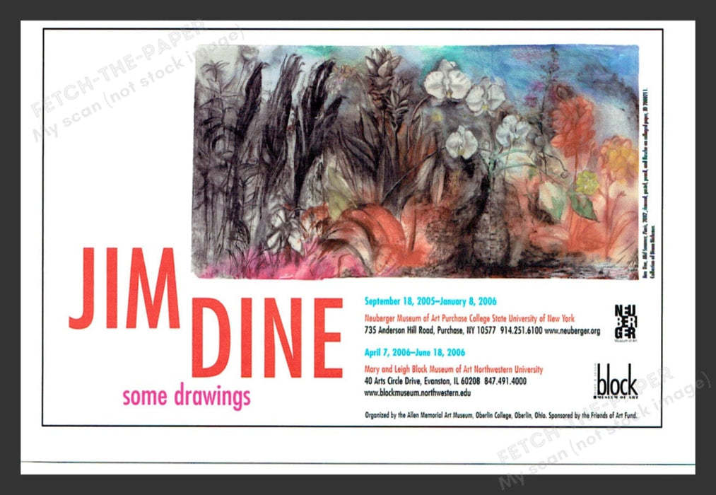 This is a print advertisement from the 2000s for Jim Dine's art gallery show, featuring his drawings. The ad showcases an expressive and colorful drawing by Jim Dine, highlighting his unique artistic style. This piece was part of exhibitions held at the Neuberger Museum of Art in New York and the Mary and Leigh Block Museum of Art in Illinois during 2005 and 2006.
