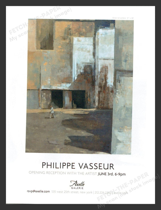 This is an original print advertisement for Philippe Vasseur's art gallery show at Axelle Galerie in New York City, held in the 2010s. The ad features a captivating abstract painting by the artist, showcasing his unique style and mastery of light and shadow. The print measures approximately 8.5" x 11".