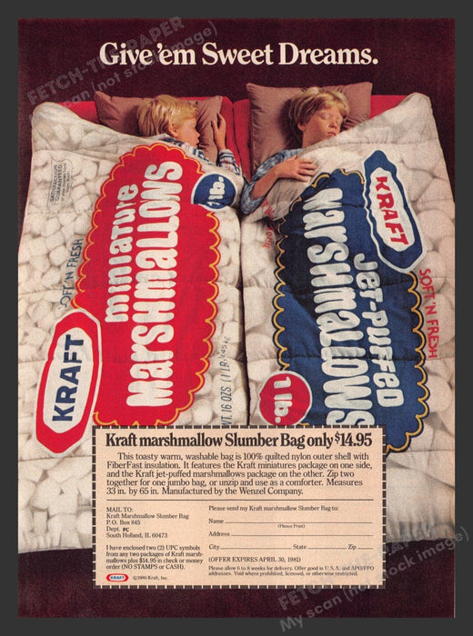 Kraft Marshmallows Kids Sleeping Slumber Bags 1980s Print Advertisement 1980