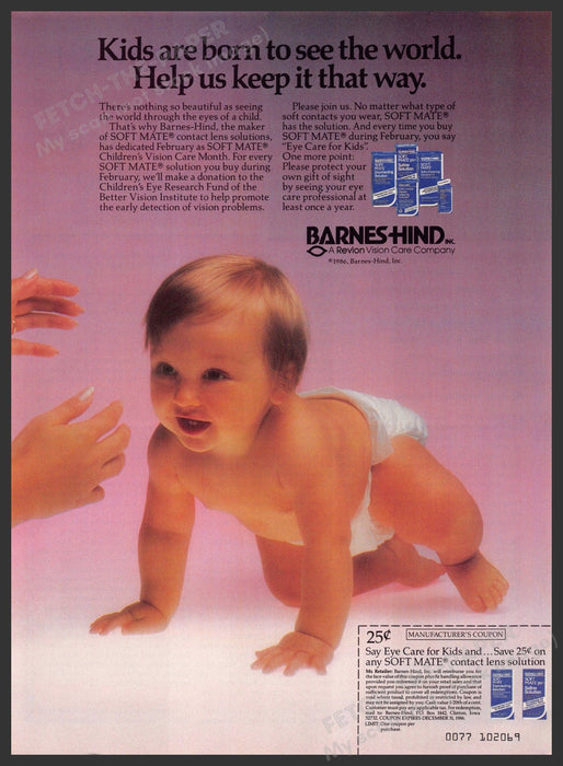 Barnes-Hind 1980s Print Advertisement 1986 Baby Eye Car Solution Kids