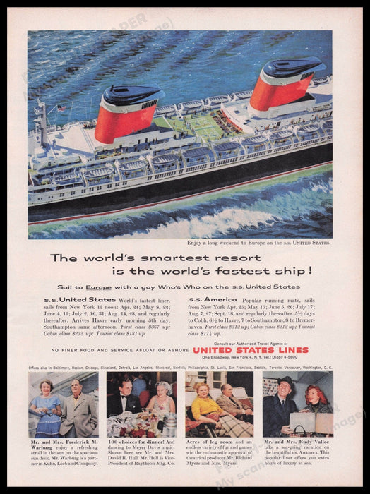 United States Lines S.S. Cruise Ship 1950s Print Advertisement Ad 1959