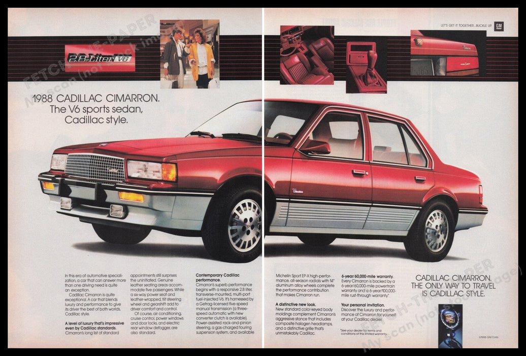 • Original 1988 Cadillac Cimarron print ad, measuring approximately 8" x 11" per page