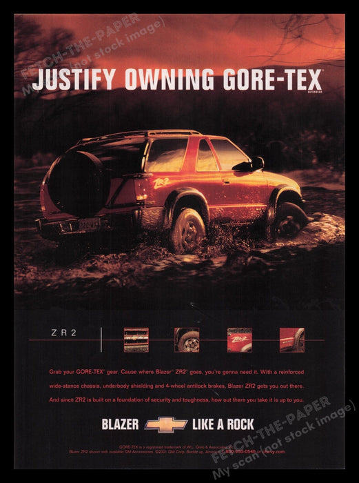 Chevrolet Blazer 2000s Print Advertisement Ad 2001 "Like a Rock" Gore-Tex