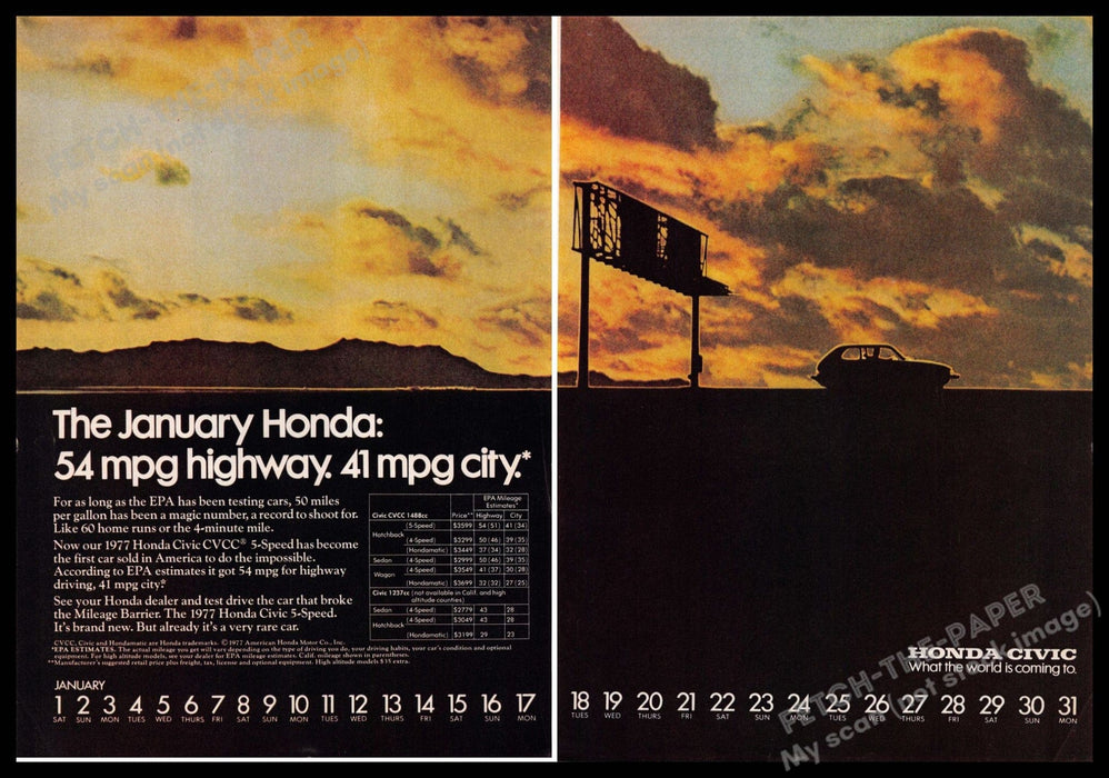 Honda Civic 1970s Print Ad (2 pages) 1977 "The January Honda"