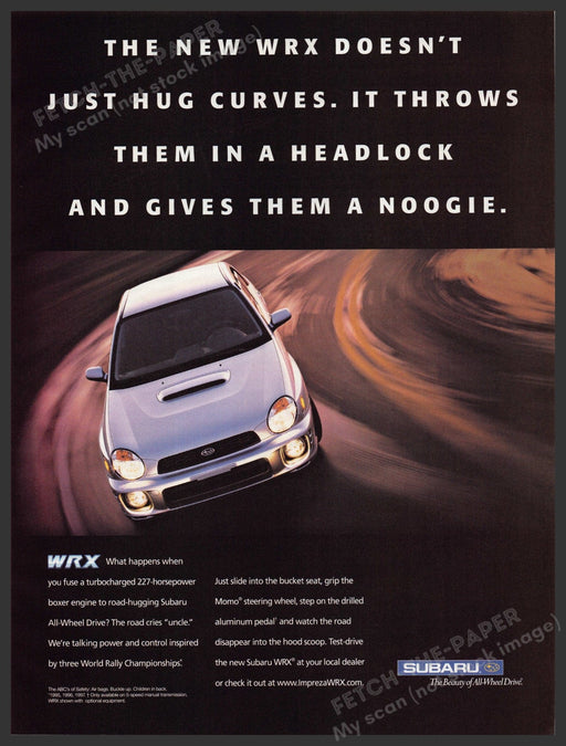 Subaru WRX Car 2000s Print Advertisement Ad 2002 "Throws curves in a headlock"
