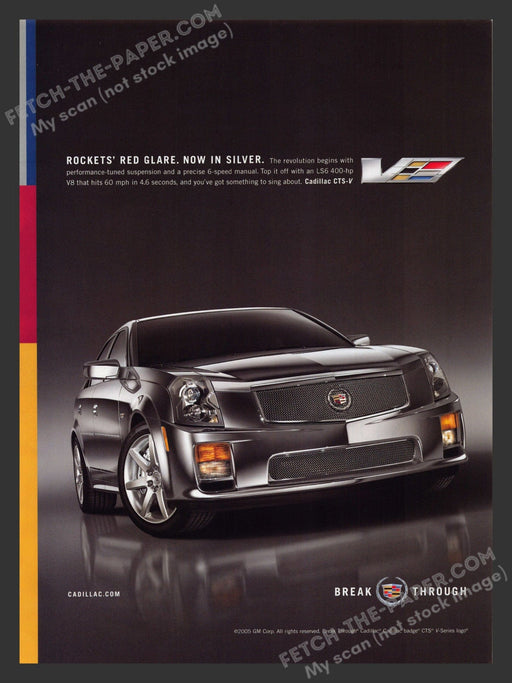 This Cadillac CTS-V Break Through print ad from the 2000s showcases the sleek and powerful design of the 2005 Cadillac CTS-V. The advertisement hig...