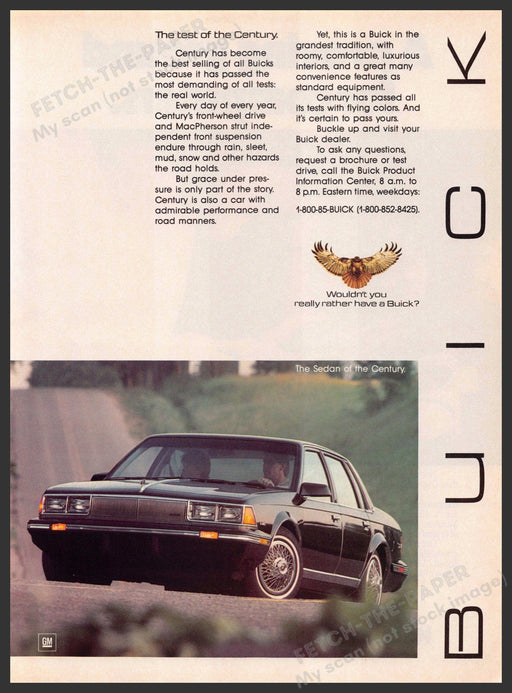 This original 1985 magazine print advertisement showcases the Buick Century, a car that epitomizes the luxury and performance of the 1980s. The ad ...