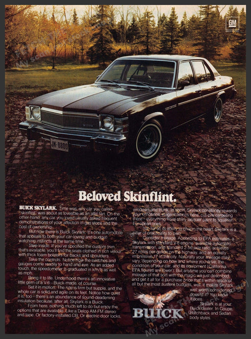 Buick Skylark 1970s Magazine Print Advertisement 1977 "Beloved Skinflint"