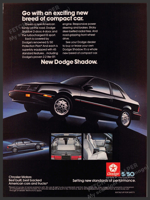 Step back into the 1980s with this original 1987 magazine print advertisement for the Dodge Shadow. This ad highlights the exciting new breed of co...