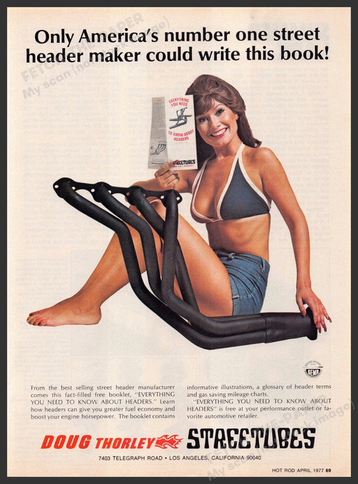 This 1977 Doug Thorley Streetubes magazine print advertisement is a captivating piece of automotive history. The ad features a model showcasing her...