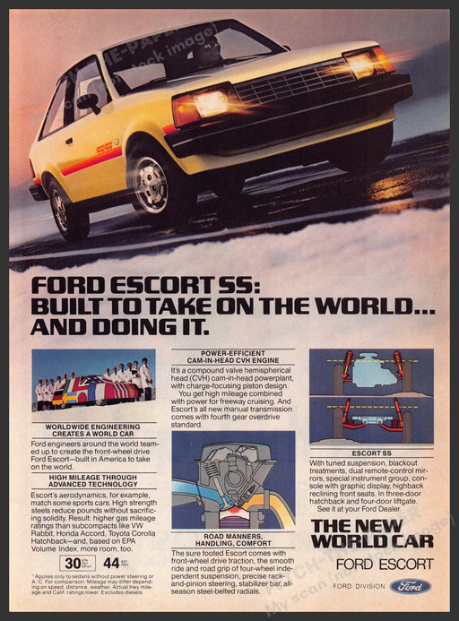 Ford Escort SS 1980s Magazine Print Advertisement 1981 "The new world car"