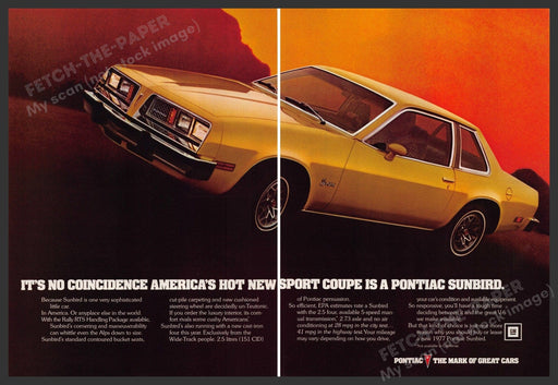 Pontiac Sunbird 1970s Magazine Print Advertisement (2 pages) 1977 Sunset