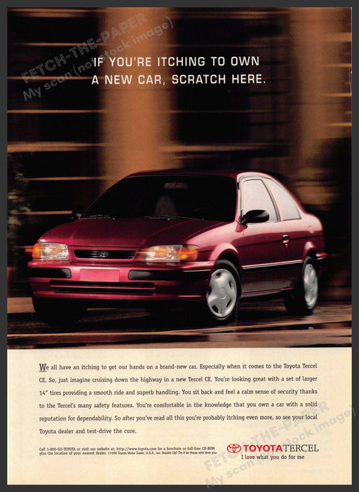 Toyota Tercel CE 1990s Print Advertisement Ad 1997 "Scratch here"