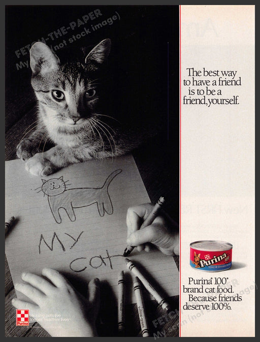 Purina 1980s Print Advertisement 1986 100 Cat Kitty "My Cat" Drawing
