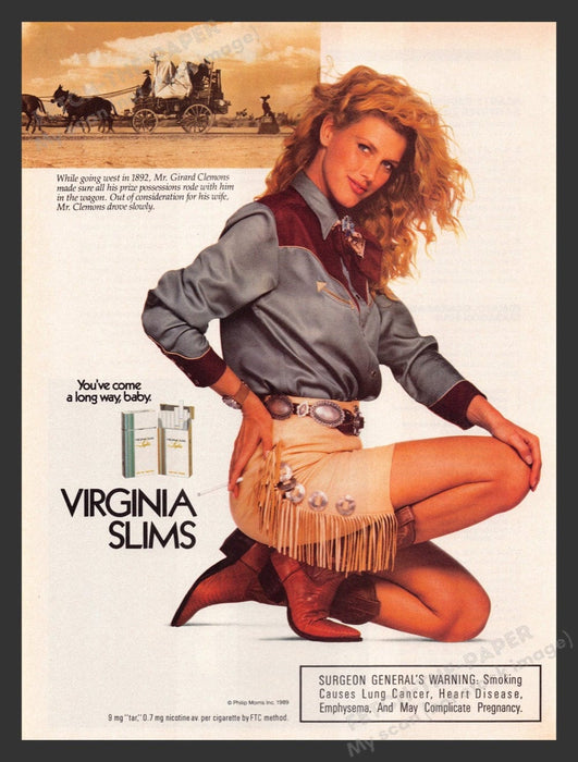 Virginia Slims Cigarettes Sexy Cowgirl 1980s Print Advertisement Ad 1989