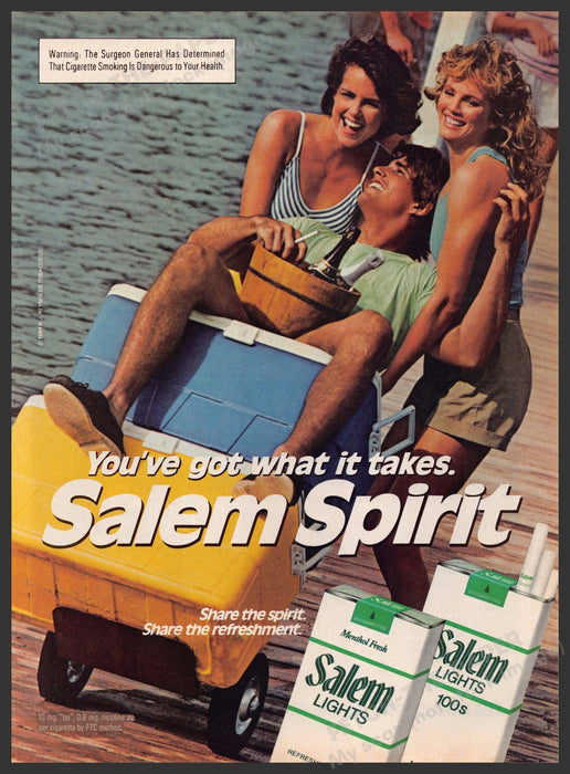 Salem Lights 1980s Magazine Print Advertisement 1984 Lake Dock Coolers Friends