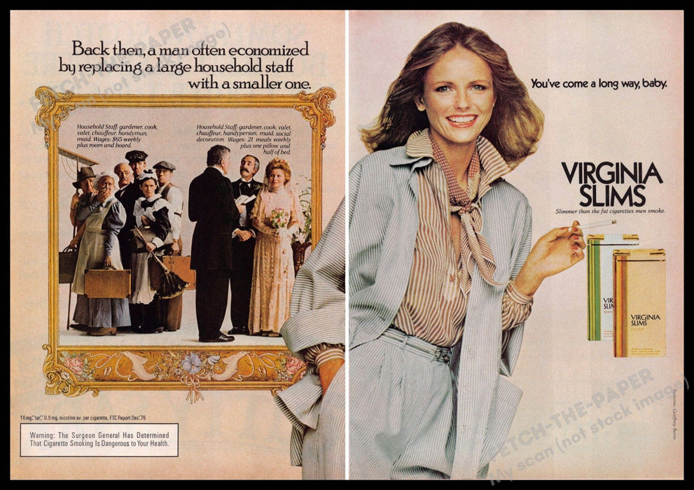 Virginia Slims 1970s Print Ad (2 pages) 1977 Cheryl Tiegs Wife Maid