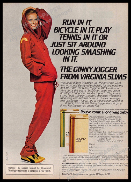 Virginia Slims 1970s Print Advertisement 1977 The Ginny Jogger Offer