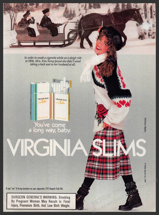 Virginia Slims 1980s Print Advertisement Ad 1988 Sleigh Ride "Take a back seat"