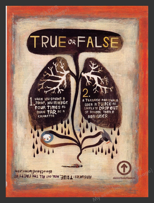 This is an original 2008 "Above the Influence" anti-drug campaign print advertisement. The ad creatively uses a lung illustration to compare the ef...