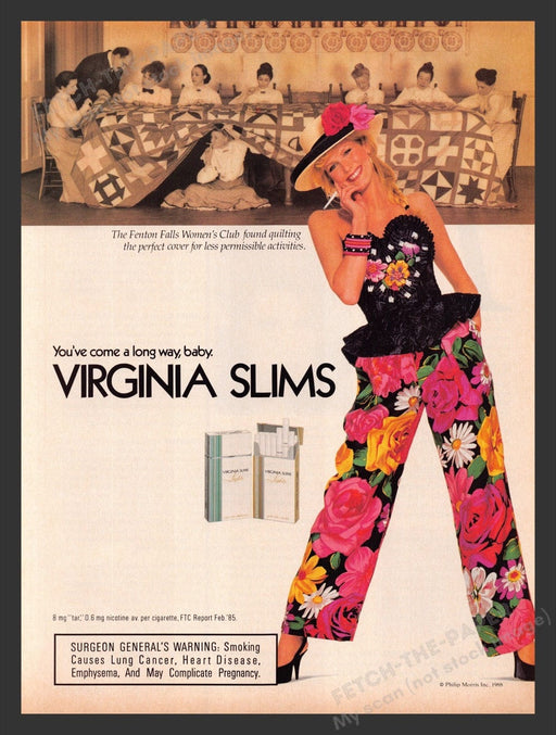 Print advertisement1988Virginia Slims Cigarettes"You've come a long way, baby."Measures approximately 8" x 11" Print advertisement only, not the fe...