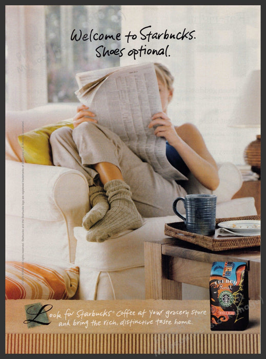 Starbucks Coffee 2000s Print Advertisement 2004 Home Grocery "Shoes optional"