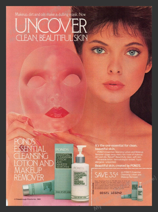 Pond's Essential Cleansing Lotion & Makeup Remover 1980s Print Ad 1983