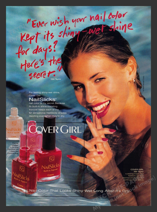 Cover Girl 1990s Print Advertisement 1994 Cosmetics Niki Taylor NailSlicks Pool