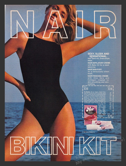 Nair Bikini Kit Sexy Model Swimsuit 1980s Print Advertisement Ad 1987