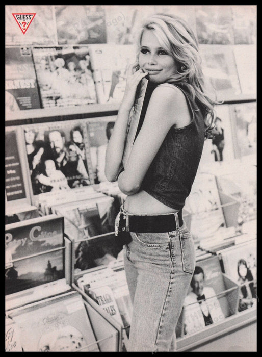 Guess by Marciano Claudia Schiffer 1980s Print Advertisement Ad Front Back 1989