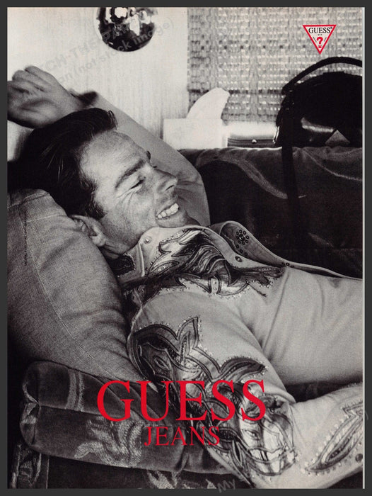 Guess Jeans 1990s Print Advertisement Ad 1992 Male Model on Couch