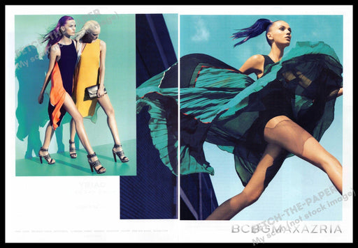 This stunning BCBG Max Azria 2-page advertisement from the 2010s showcases the brand's vibrant and dynamic fashion. The ad features models with str...