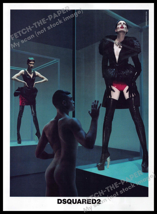 This captivating Dsquared2 advertisement from the 2010s features a striking and provocative scene. The image showcases a bare male model interactin...