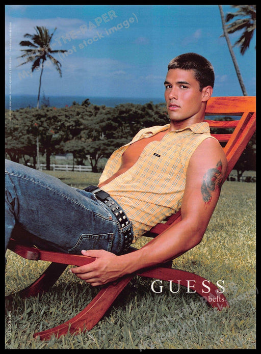 Guess Belts 2000s Print Advertisement 2001 Lawn Chair Sexy Male Model