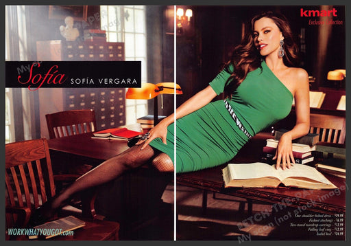 This 2010s print ad features the stunning Sofia Vergara promoting her exclusive clothing collection available at Kmart. The advertisement showcases...