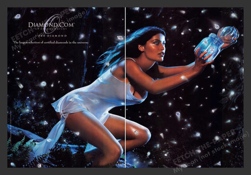 This stunning 2000 Diamond.com advertisement features the captivating Laetitia Casta in a mesmerizing scene. She is depicted in a glowing white dre...