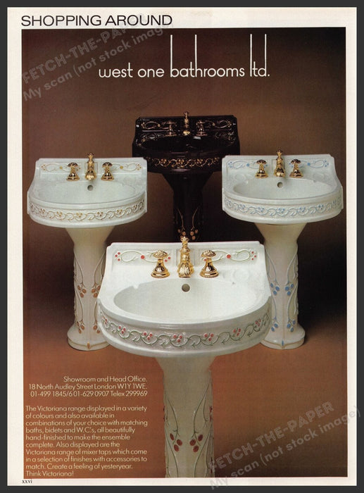 West One Bathrooms The Victoriana Sinks 1980s Print Advertisement Ad 1982 UK