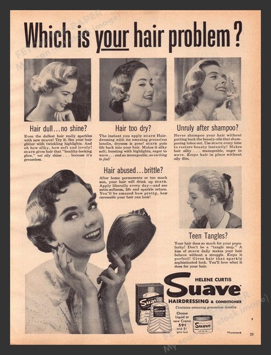 Suave Helene Curtis Hair Problem Fixes 1950s Print Advertisement Ad 1956