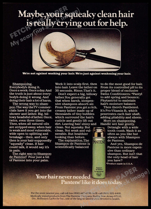 Pantene 1970s Print Advertisement 1977 Magnifying Glass Hair Ends