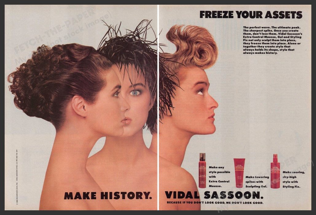 Vidal Sassoon 1980s Magazine Print Advertisement (2 pages) 1986 "Freeze assets"