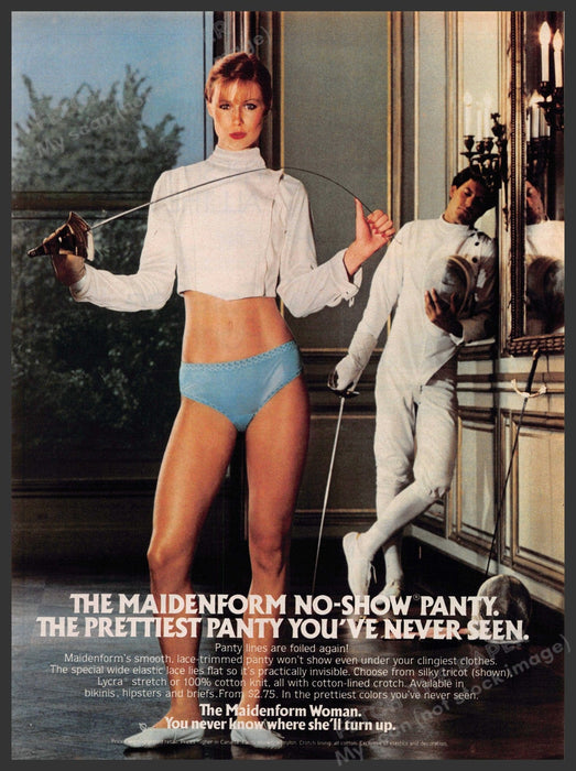 Maidenform Woman Lingerie 1980s Print Advertisement 1981 Fencing Rapier Sword