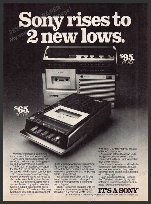 - Original 1977 magazine advertisement for Sony TC-205 & CF-302