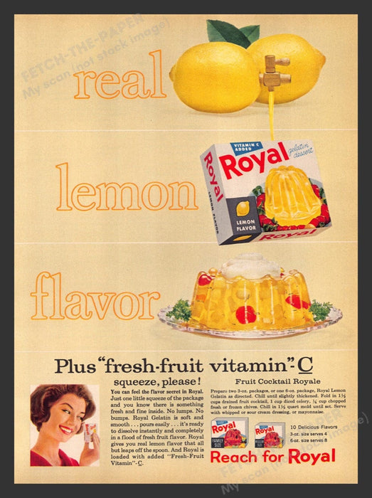 - Original 1963 print ad for Royal Real Lemon Flavor Gelatin