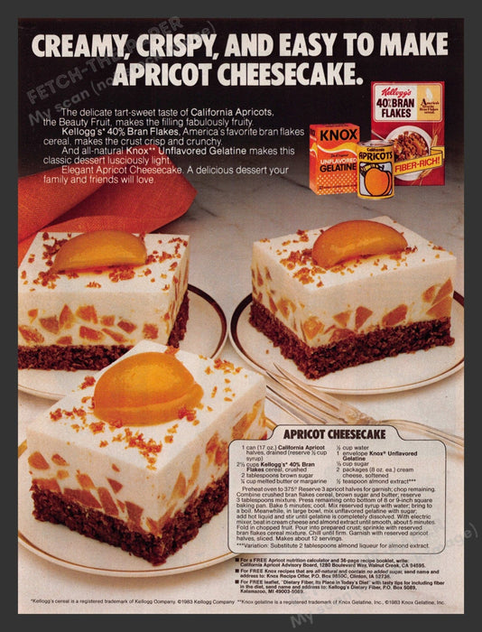 Kellogg's 1980s Print Advertisement 1983 Apricot Cheesecake Recipe Knox Gelatine