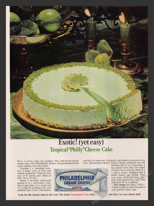 Kraft 1960s Print Advertisement 1964 Philadelphia Tropical "Philly" Cheese Cake