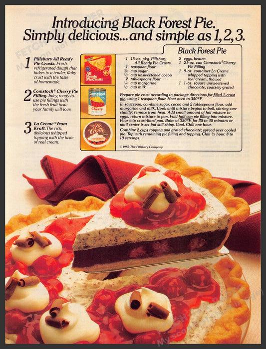 Pillsbury 1980s Magazine Print Advertisement 1983 "Black Forest Pie" Recipe