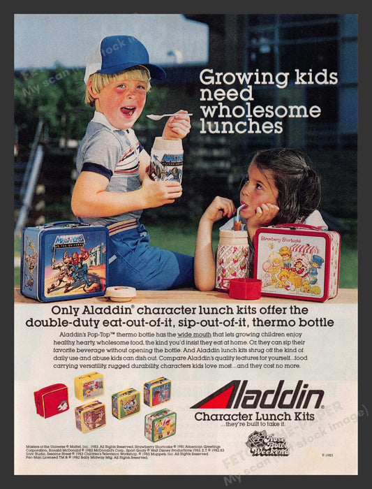 Aladdin 1980s Print Advertisement 1983 Lunch Kits Masters Shortcake Pac-man etc