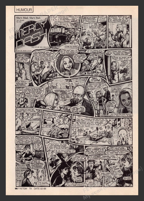 1988 U.K. Exclusive "Mercy Dash" Paula Byrne Short Comic Print Ad