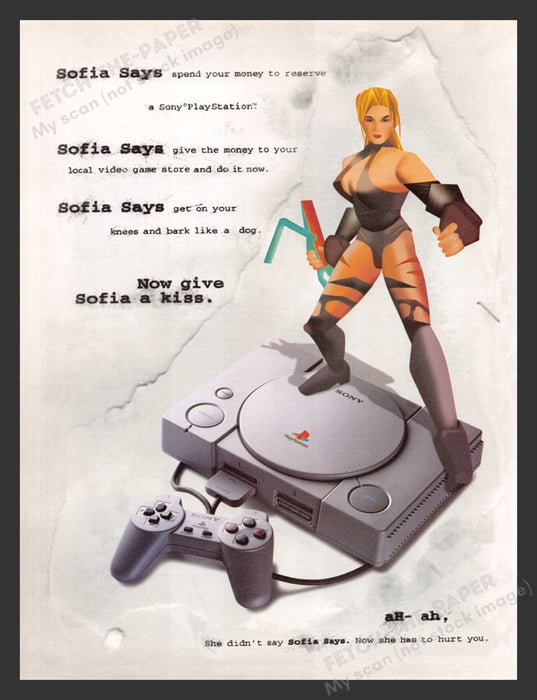 1995 Sony PlayStation "Sofia SAYS" Video Game Print Advertisement